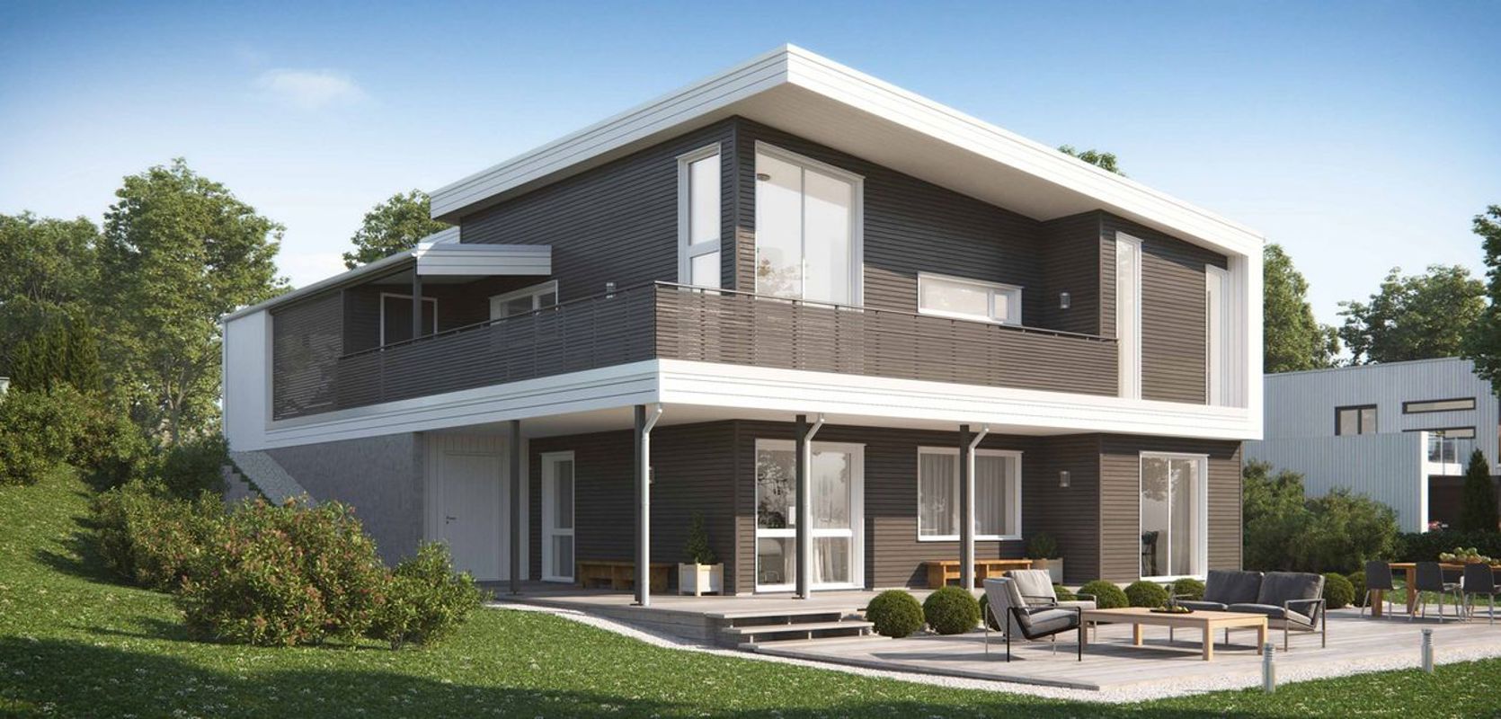 Mesterhus Signatur 306 er designet med stramme og rene linjer som gir det et moderne uttrykk. Et stort panoramavindu i hjørnet av stuen gir mye lys inn i fellesrommet og flott utsikt. Hovedboligen har tilsammen tre soverom, hvorav ett på samme plan som de andre hovedfunksjonene, noe som gjør dette til en bolig godt tilpasset alle livsfaser.