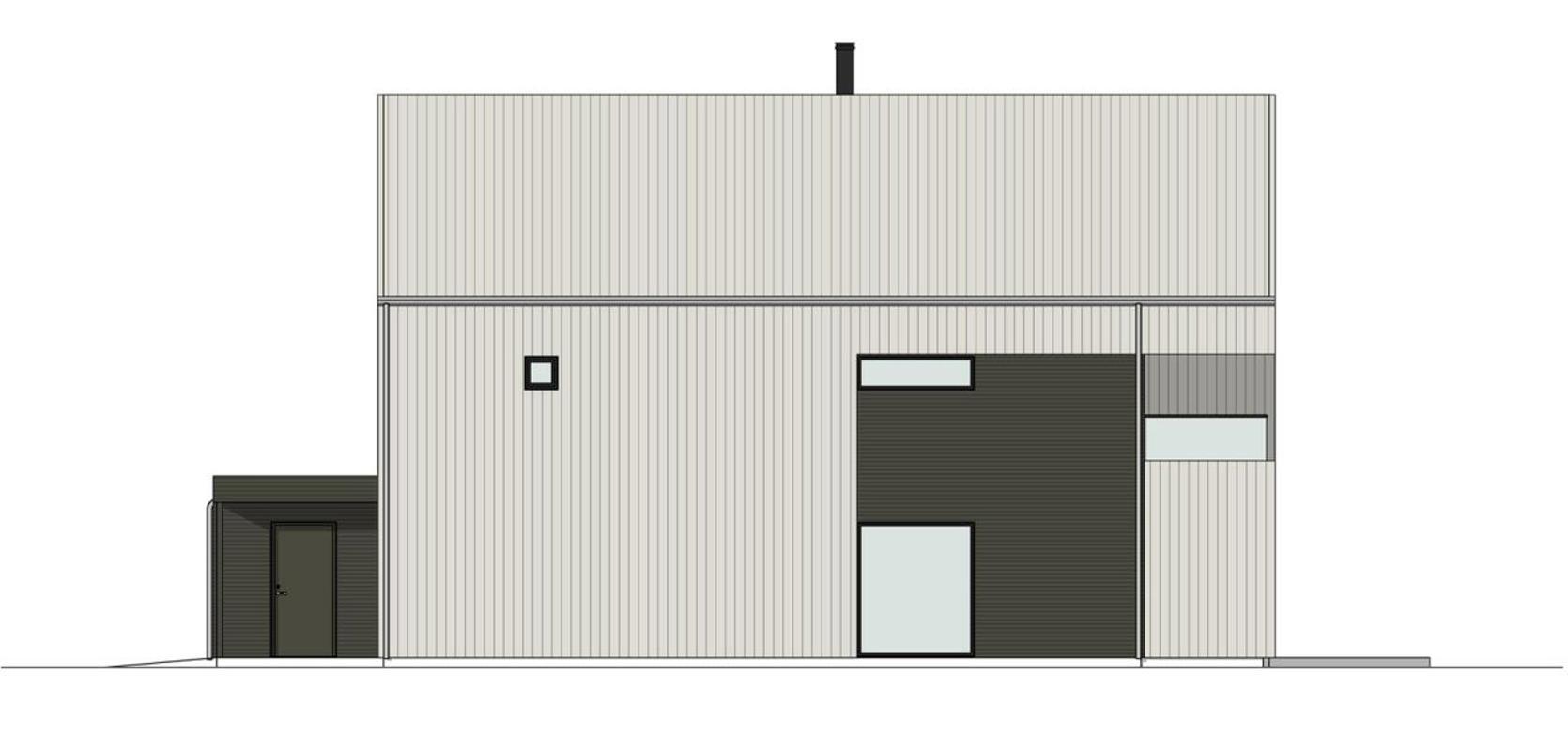 Denne versjonen av Alta har fått et stilig overbygd inngangsparti, med en praktisk sportsbod rett ved inngangsdøren. Der kan man enkelt sette fra seg barnevogn, sparkesykler, akebrett og andre ting en aktiv familie har, men ikke trenger å ha med inn i huset. Når du kommer inn har du garderobe og vaskerom rett innenfor døren. Alle våte klær kan gå rett til tørk og vasking. Du har også et bad i gangen. Det er tre soverom i første etasje, hvorav det største har et romslig walk-in-closet. Det er også en TV-stue i denne etasjen, som har dør ut mot den overbygde plattingen og hagen. På grunn av den ene veggen som går ned fra fasaden her, så får man en lun og skjermet uteplass.